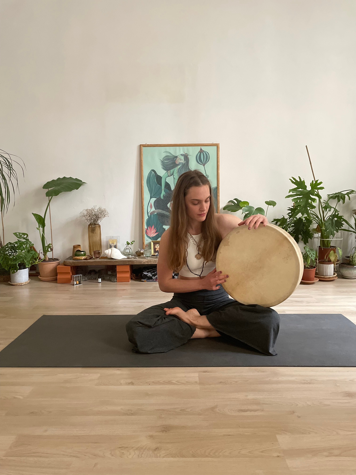 With teachings of Livia Oliveira I am expanding my knowledge on the practice and theory of yoga and Hindu mythology. I am passionate about using the concepts of astrological transits, which I study with Rick Levine, and seasonal energy in the practice of Vinyasa Yoga. By creating the sequences that correspond to the different energy points in my practice, I help to move from one asana to another in a fluid way using breath. During my lessons I use Shamanic Drum sound and mantras to create a spiritual and devotional journey.